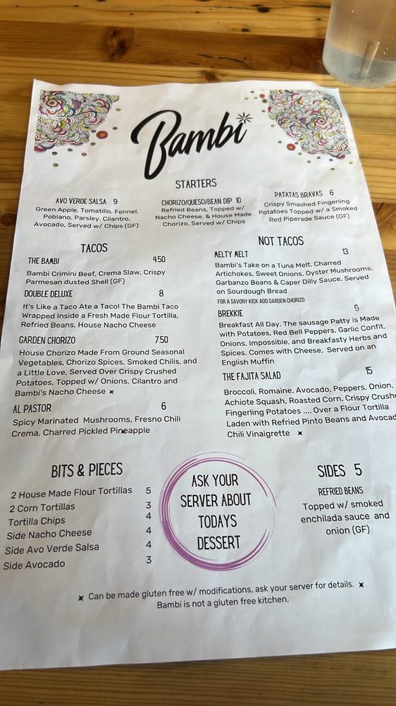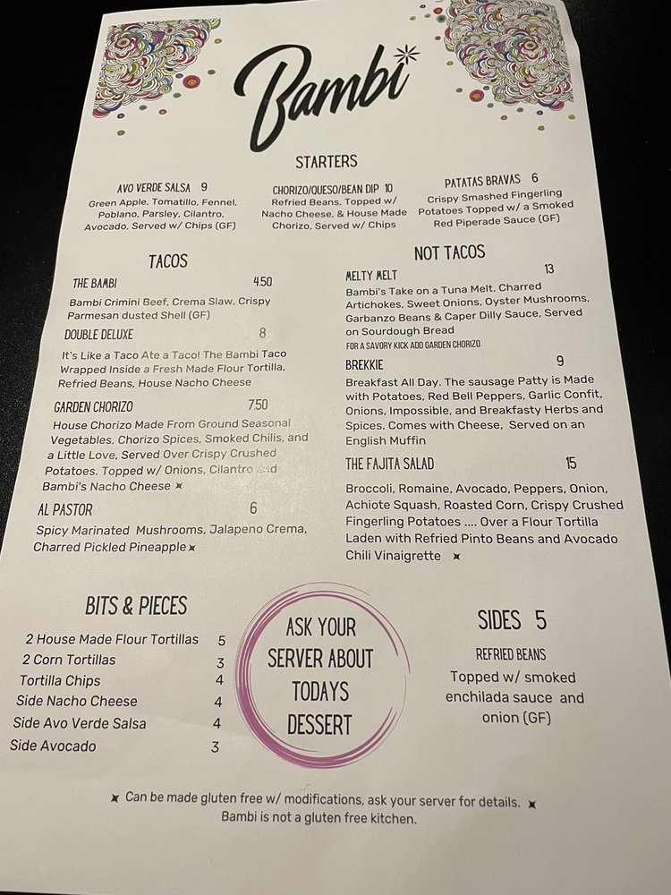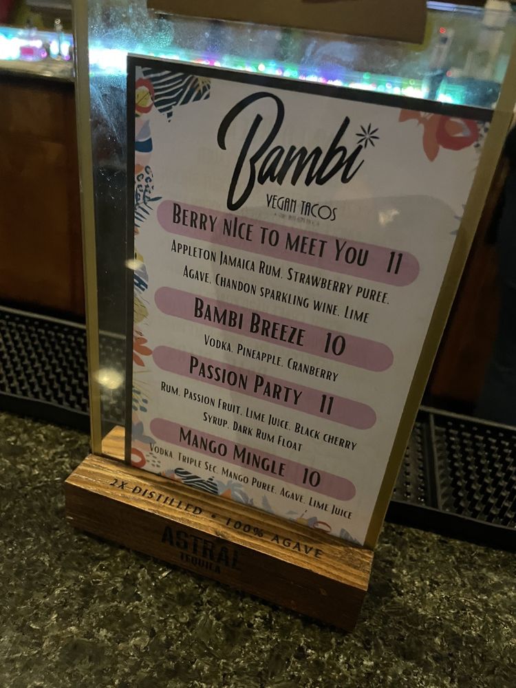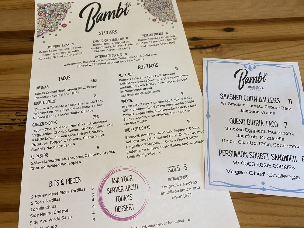 Located in Sacramento, CA, Bambi Vegan Tacos offers a hipster, trendy dining experience with a wide range of vegan and vegetarian options. The menu features starters like Avocado Verde Salsa and ChoriQueso Dip, as well as unique tacos like the Al Pastor and Bambi with crimini beef. Customer reviews rave about the Brocco Taco, the Garden Chorizo Taco, and the Melty Melt. With a relaxed ambiance and strong drinks, Bambi Vegan Tacos is a must-try for both vegans and non-vegans alike. Don't miss out on the flavorful vegan twists to Mexican cuisine and be sure to try their delicious plant-based offerings.